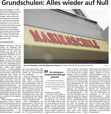 In diesem Zusammenhang sei auch noch angemerkt: Im Beitrag der Geseker Zeitung vom 03.07. „Erhalt aller Grundschulen ist unerlässlich“ wird an „unsere Politiker appelliert, nicht wieder wirtschaftliche oder etwa persönliche Interessen über die Bedürfnisse der Kinder zu stellen“.