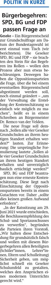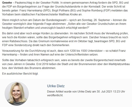 30. Juli 2021: Bürgerbegehren zu den Schulstandorten