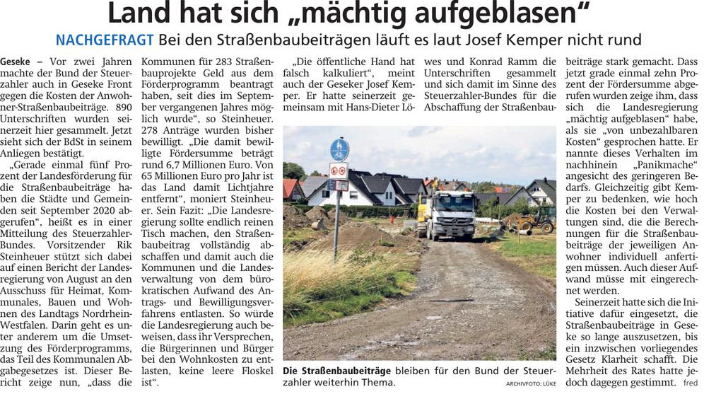 Die Geseker Zeitung berichtet heute unter "Nachgefragt", wie viele Mittel aus dem NRW-Topf für kommunale Abgaben durch die Kommunen tatsächlich abgerufen wurden.